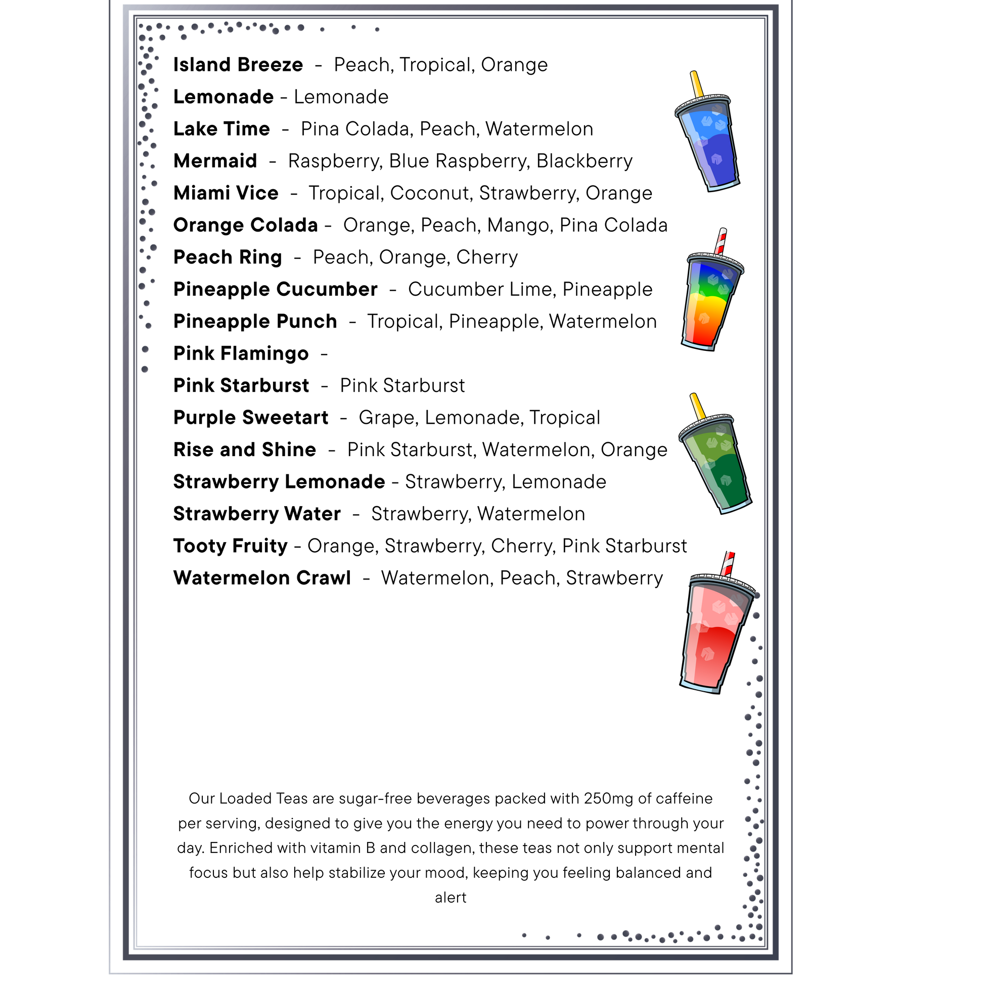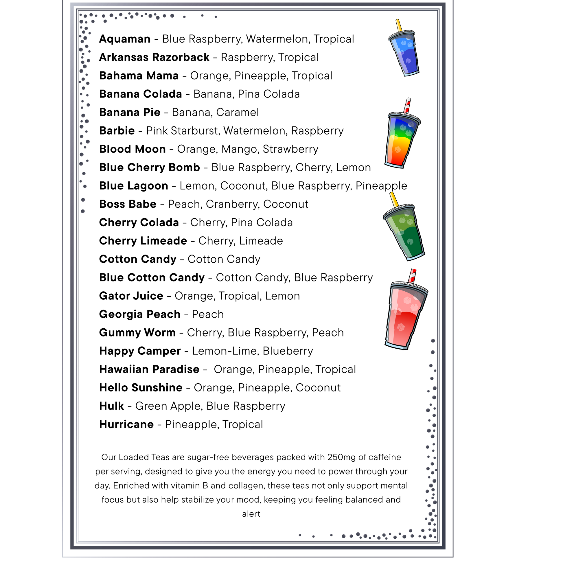 Our Loaded Teas are sugar-free beverages designed to increase energy and boost metabolism with 220mg of caffeine per serving. Enriched with vitamin B and collagen, it supports mental focus and helps stabilize mood. Simply add water for a revitalizing drink that combines performance and wellness benefits in one easy step.
